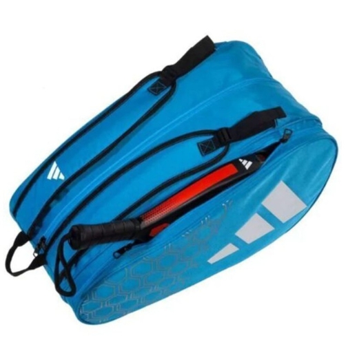 El Bolso de padél Adidas Control 3.2 en tono azul es la opción perfecta para jugadores de pádel que buscan un equilibrio entre funcionalidad, diseño moderno y practicidad. Su diseño compacto presenta dos compartimentos principales —un amplio espacio central para ropa y accesorios y un compartimento lateral para hasta 7 palas—, lo que lo convierte en un aliado ideal para entrenamientos y partidos.